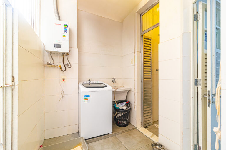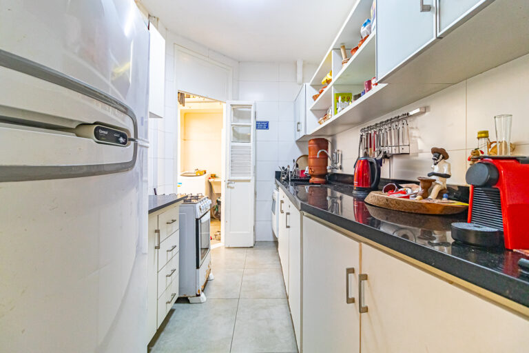 A cozinha é compacta, porém funcional. Conta com uma boa área de serviço que também tem acesso à área externa, além da dependência e WC de serviço.