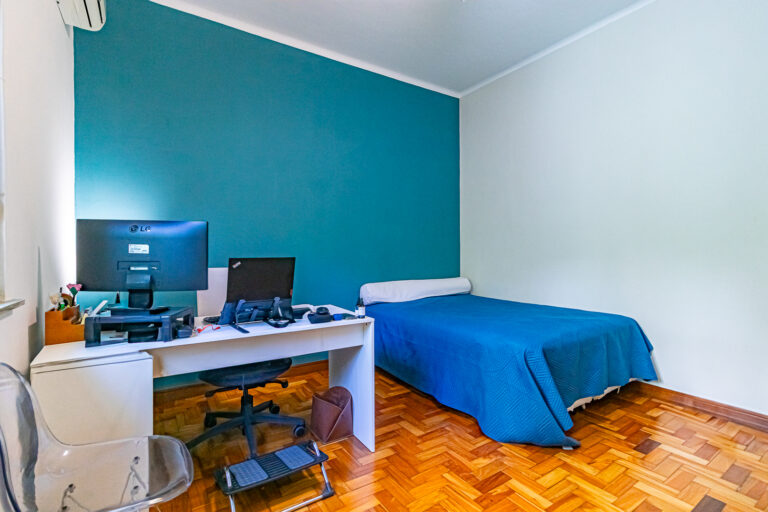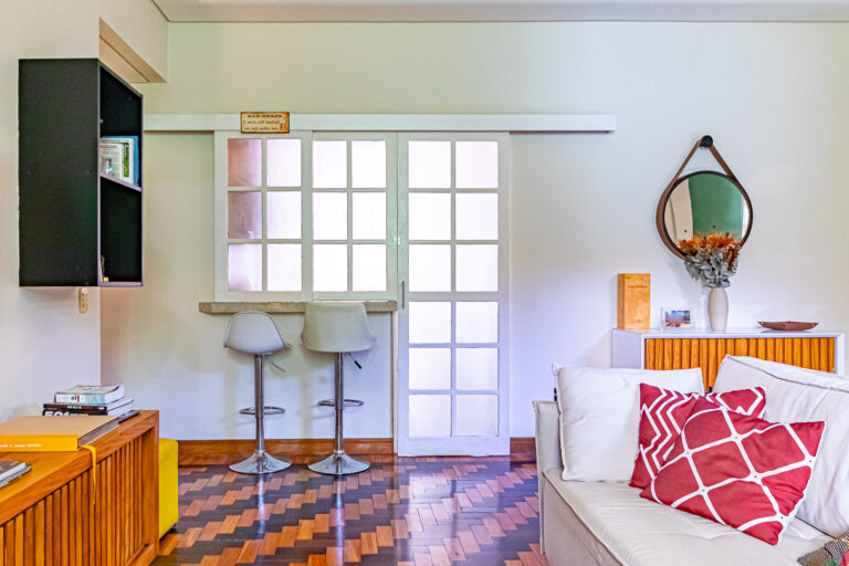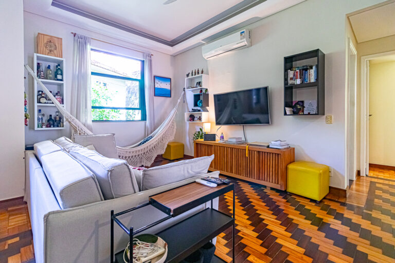 O imóvel de 95m², fica localizado em um predinho sem elevador, bem típico do bairro, na Praça Pio XI.