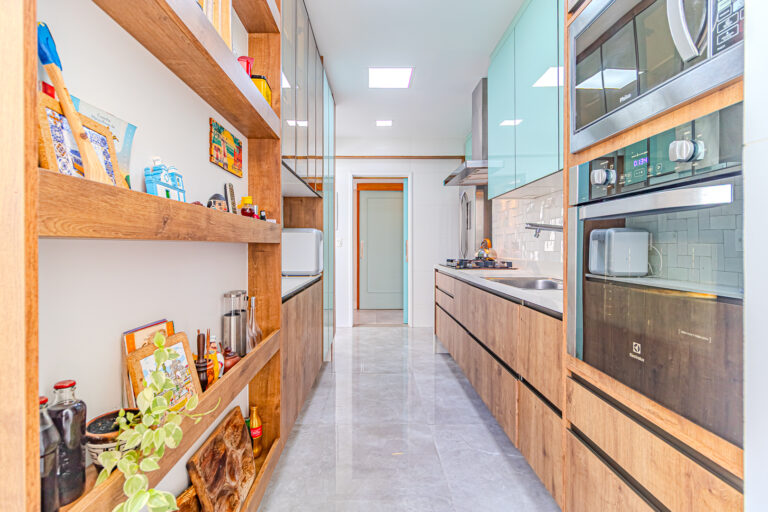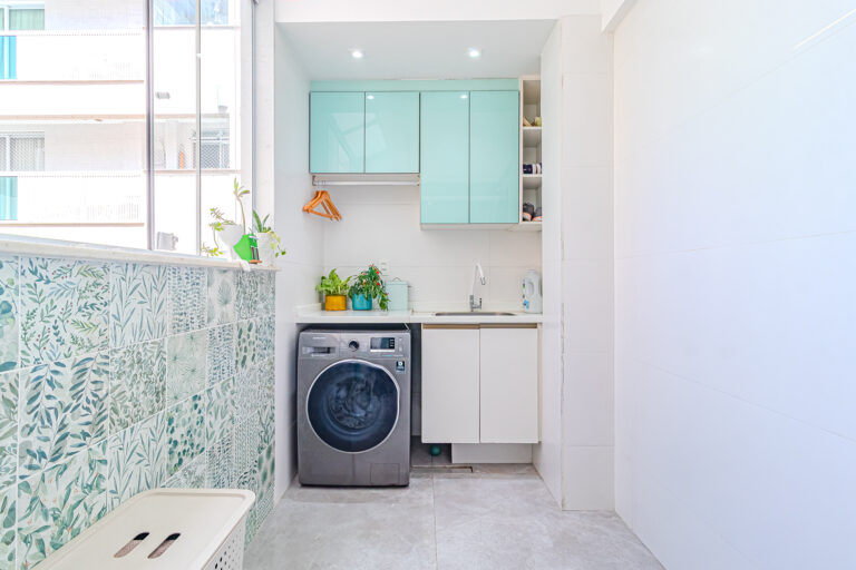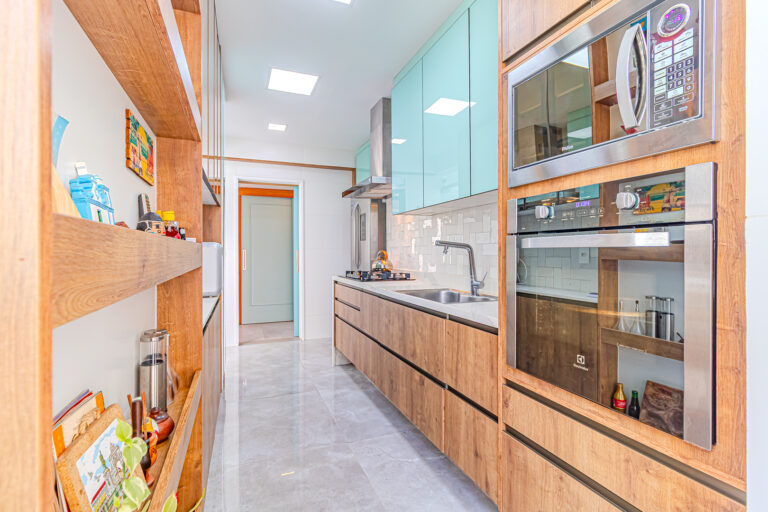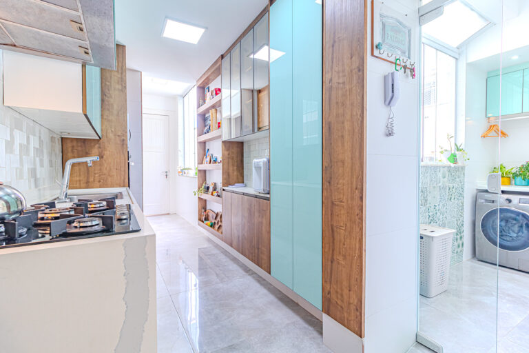 A cozinha, que fica no 1º piso, é ampla, bem iluminada e repleta de armários planejados. Conta ainda com uma ótima área de serviço separada e uma dependência (com suíte) totalmente reformada.