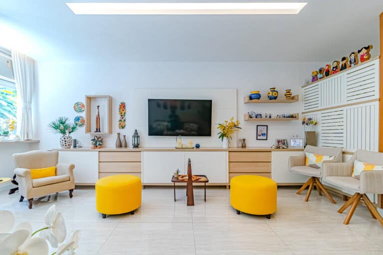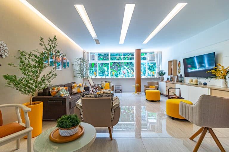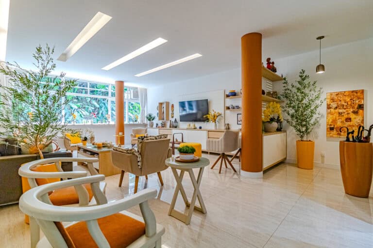 Só posso definir este apartamento como uma verdadeira obra de arte. O apê por si só já é uma pintura, cheio de cores e lindamente decorado. Além disso, o prédio é uma joia da arquitetura moderna, localizado praticamente dentro da mata do Parque Lage.