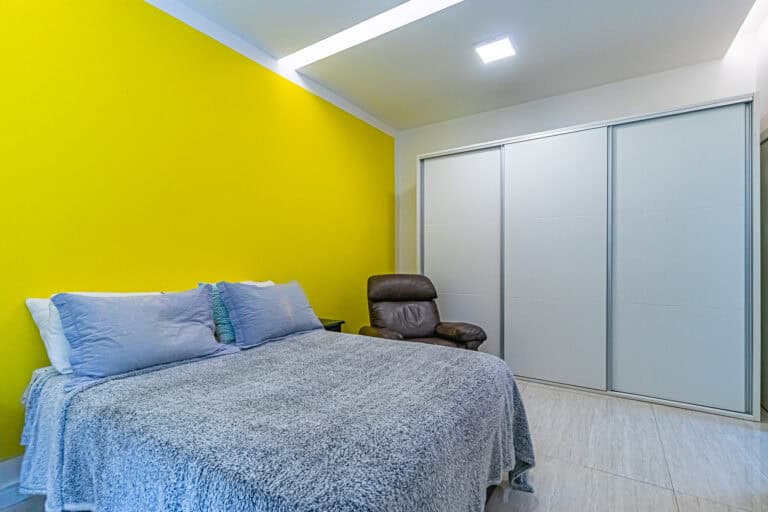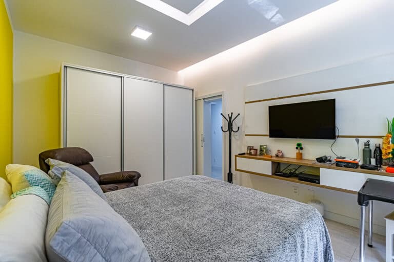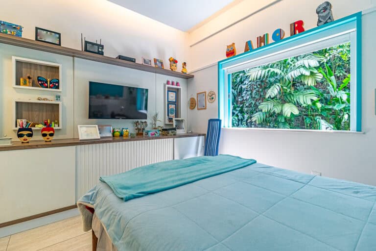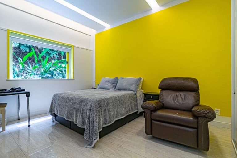A área íntima é composta por 3 quartos sendo 1 suíte. Todos debruçados na mata atlântica, com belos projetos de marcenaria.