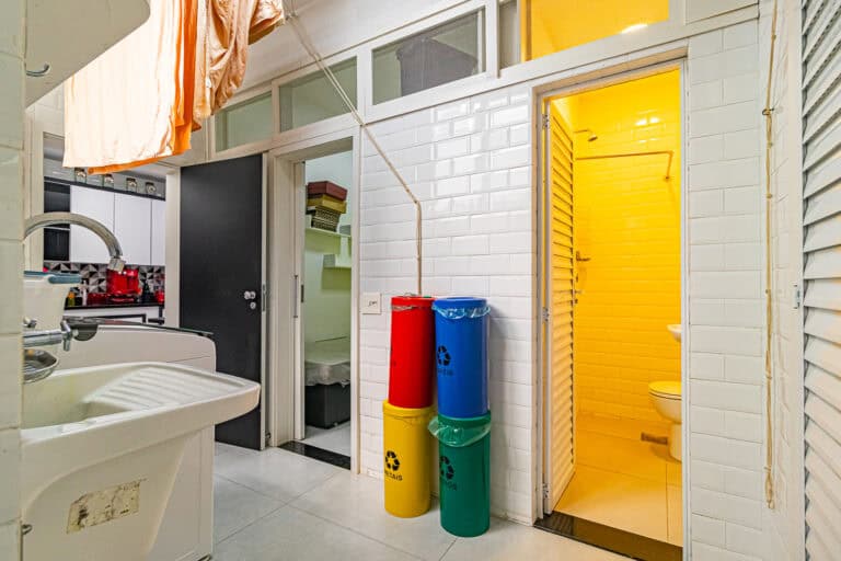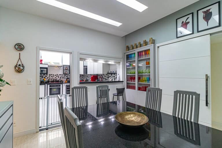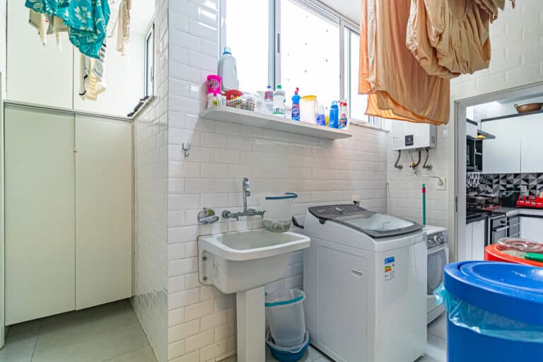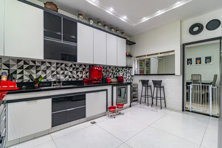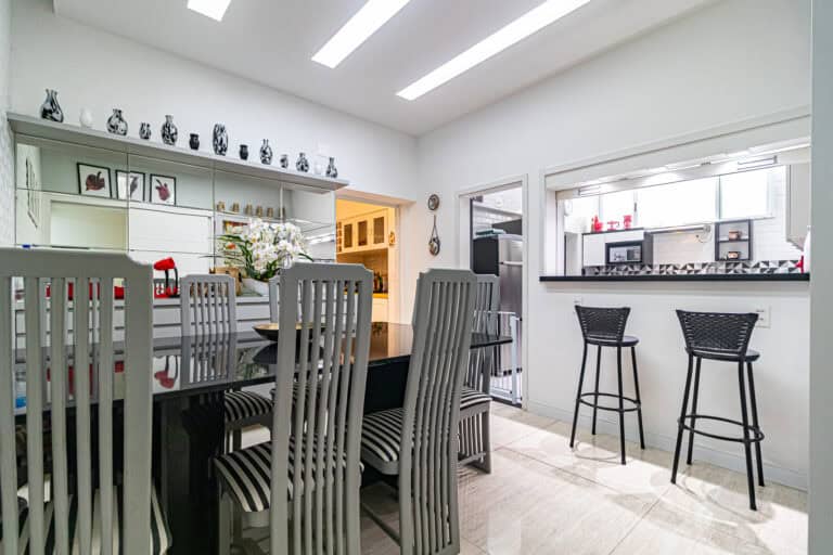 A cozinha também é bem espaçosa, ventilada e tem formato quadrado. Conta ainda com uma boa área de serviço, dependência e WC.